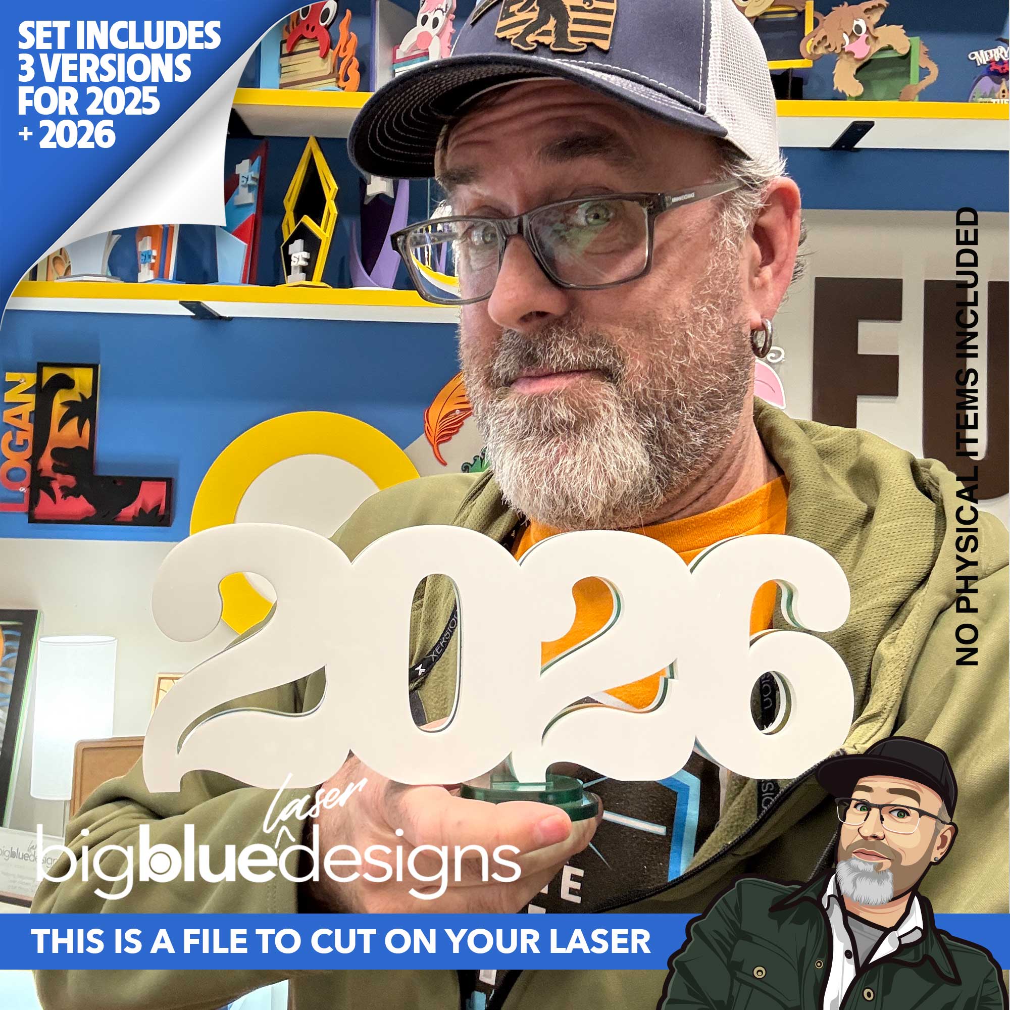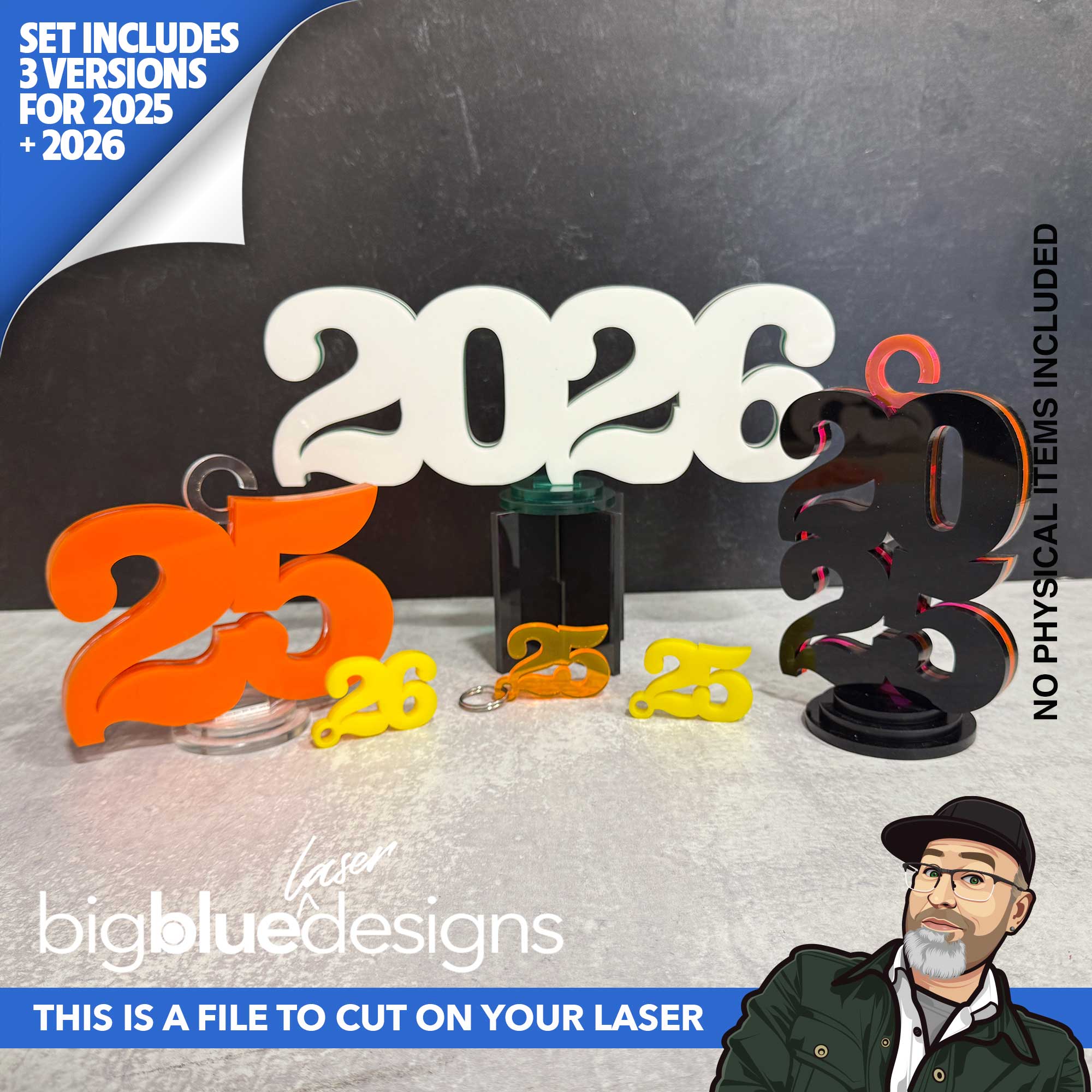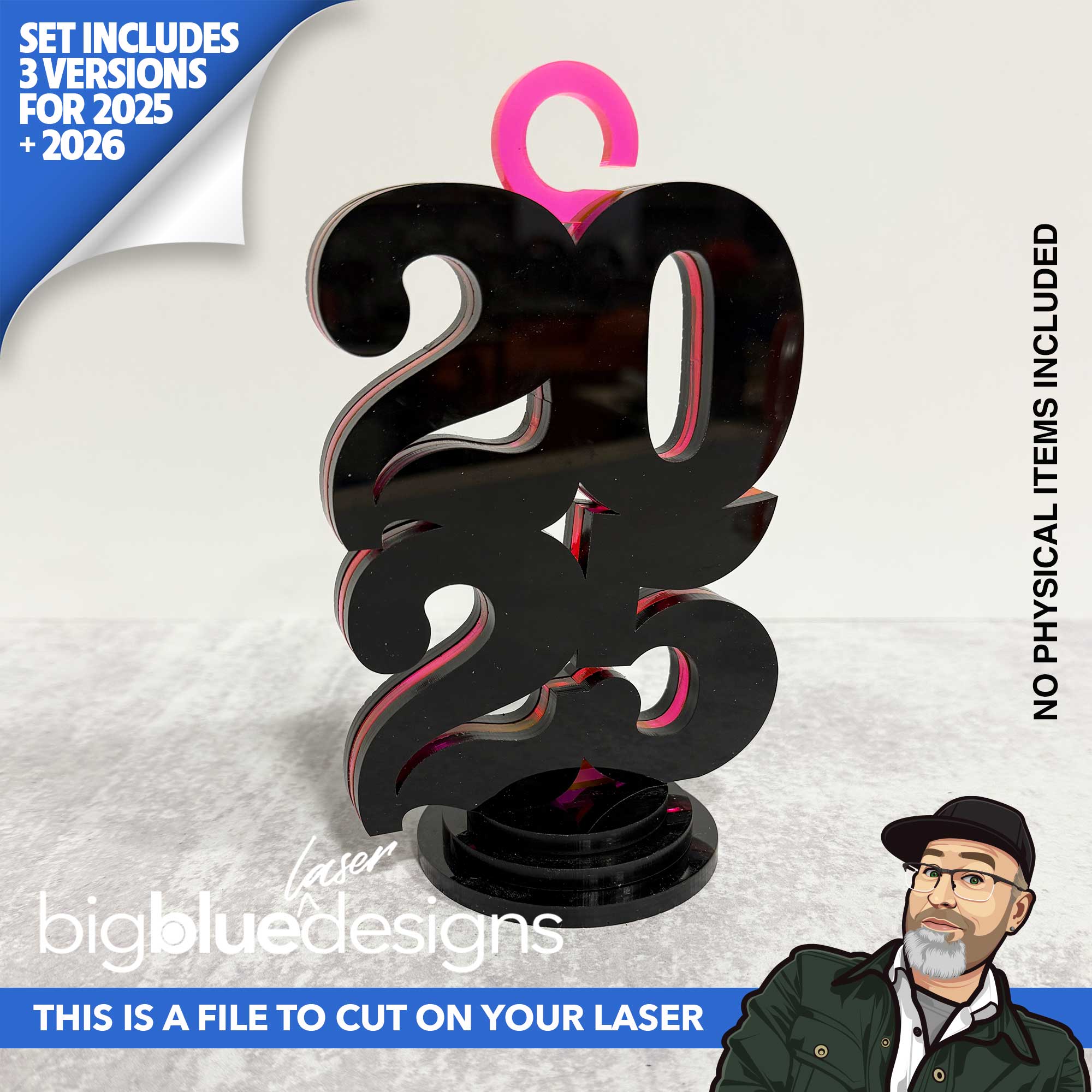 • The stacked 2025 and 2026 are 4.3" x 5.9" including the hook.