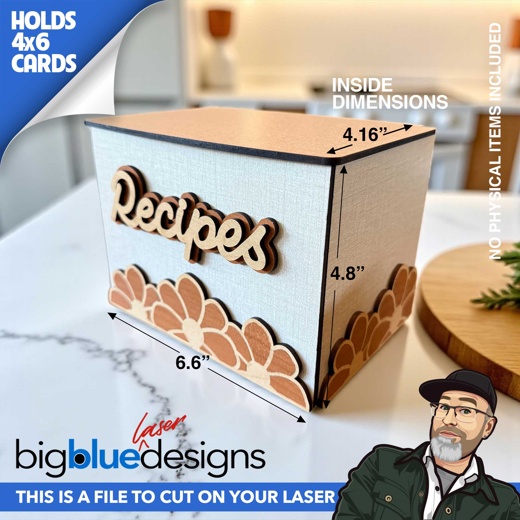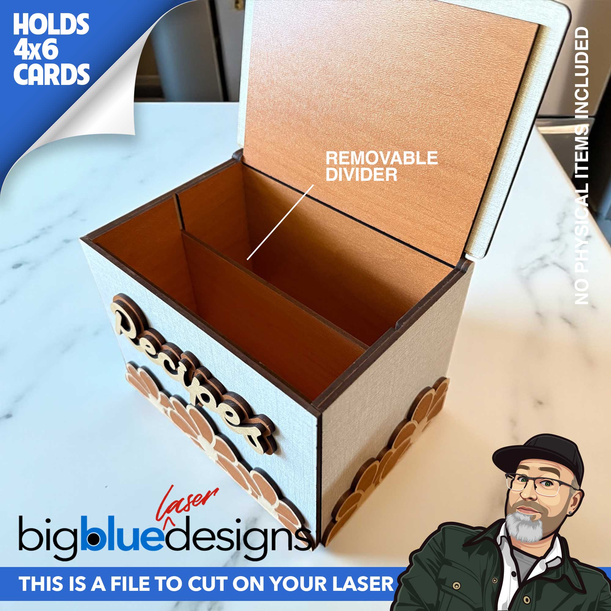 This box can hold 4" x 6" recipe cards, sure! But you can customize it in so many ways to make it more than just a box! Of course you can use the included 2-layer "Recipe" text and the flower layers, but since the box is made with an inside and outside layer, you could cut all kinds of designs in the outside layer just like you've seen me do with so many other decorative boxes. Your imagination is the limit!